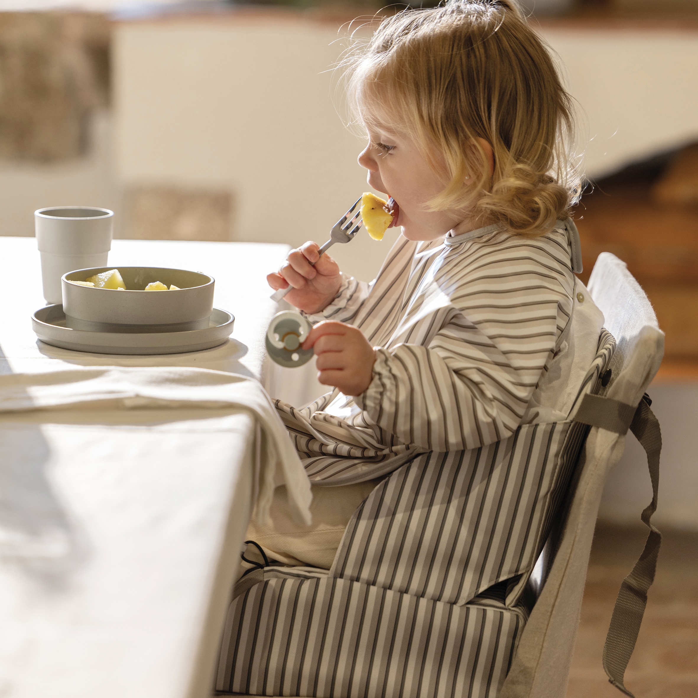 סינר אוכל מקולקציית botton עם שרוולים ארוכים. בעיצוב פסים עדין, מונע לכלוך במהלך האוכל. יש לכבס ידנית או בכביסה עדינה עד 30 מעלות.
