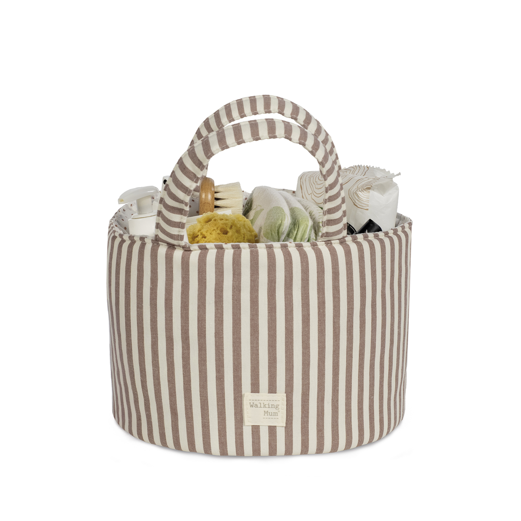 ארגונית לשידת החתלה מקולקציית PRALINE בגוון מוקה ורוד חום בהדפס פסים.