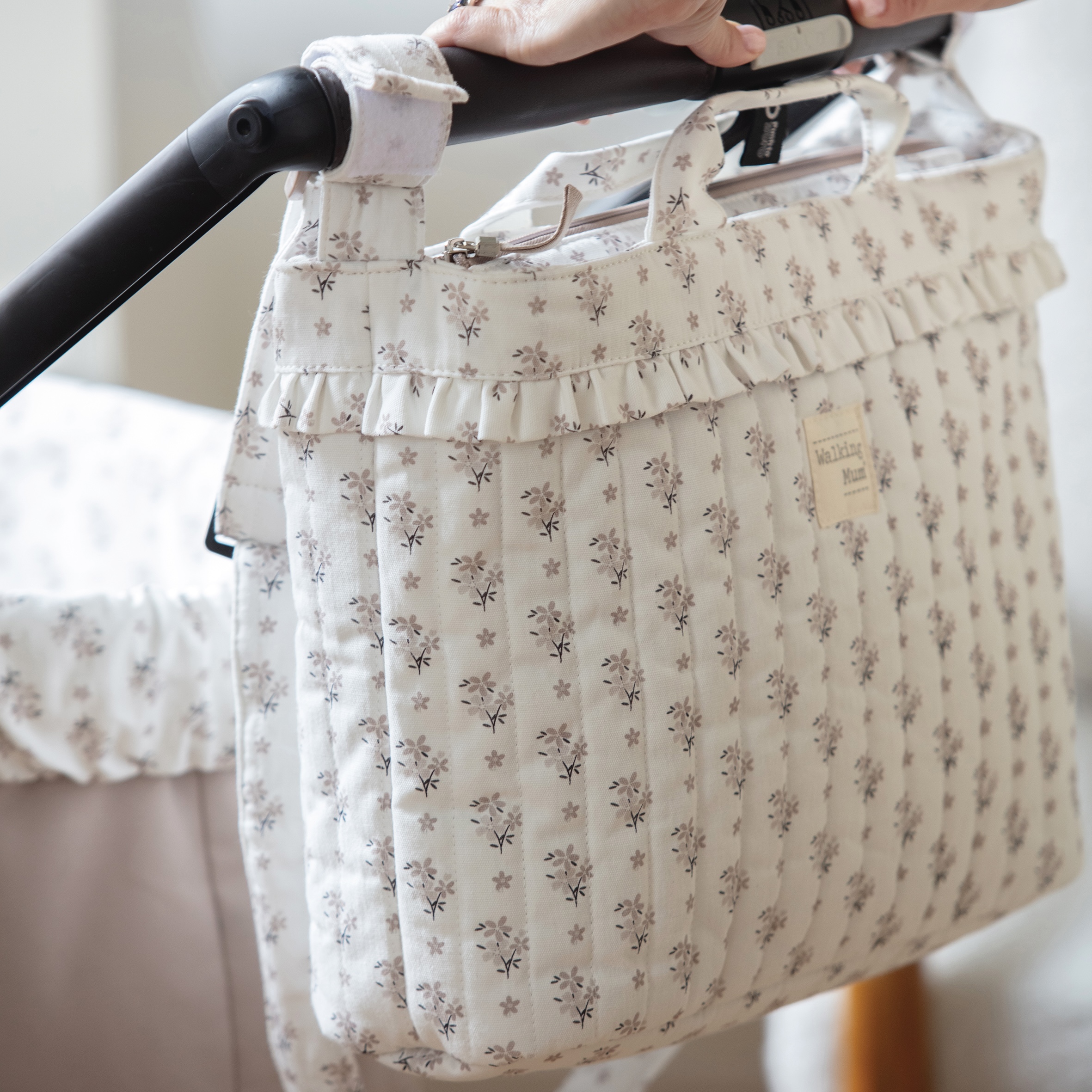 תיק עגלה מושלם לך ולבייבי שלך. 100% כותנה בעיצוב עדין עם תאים פנימיים (אחד מהם תא לבקבוק שומר קור/חום). בעל תליה ייעודית לעגלה, מיוצר מבד איכותי שמתנקה בקלות.