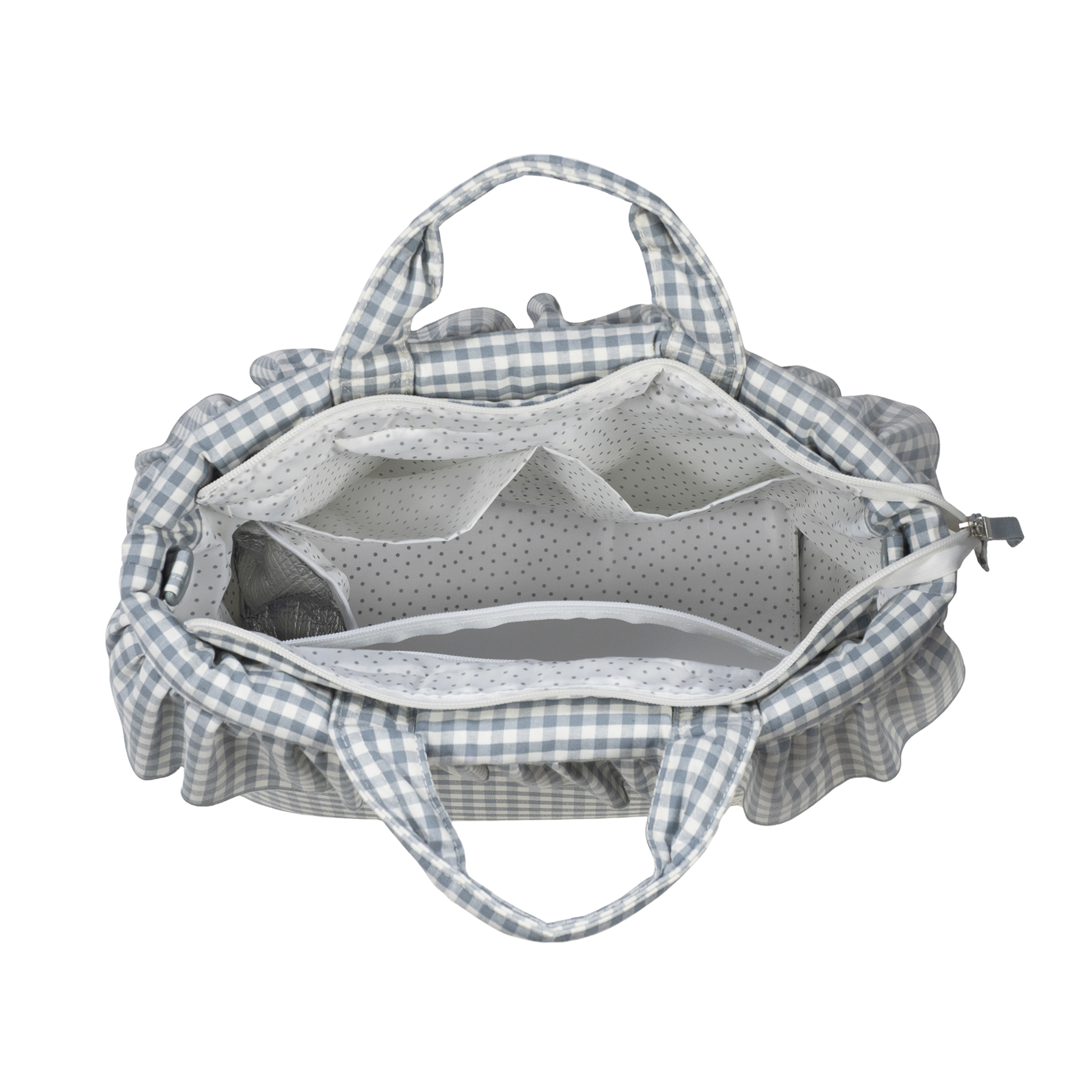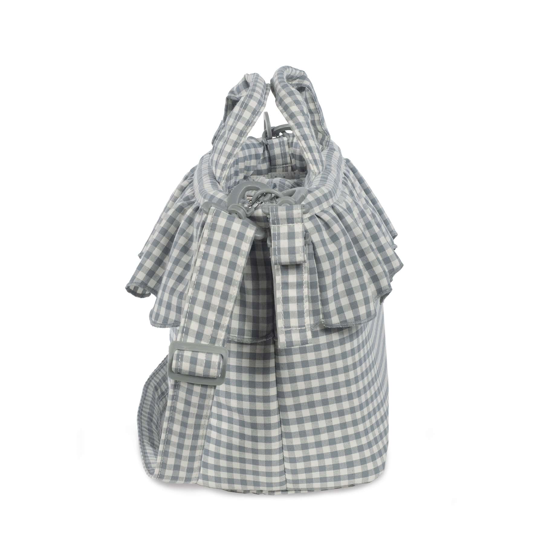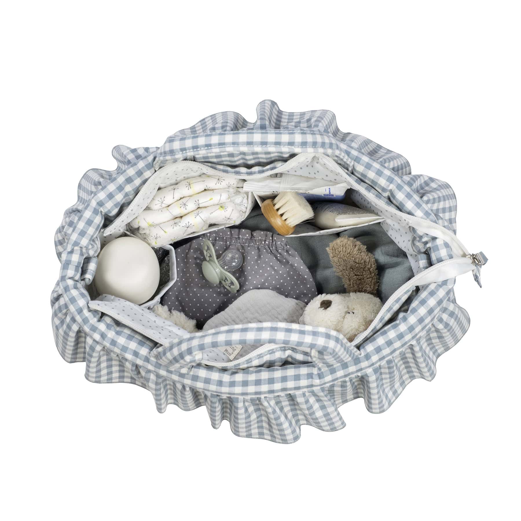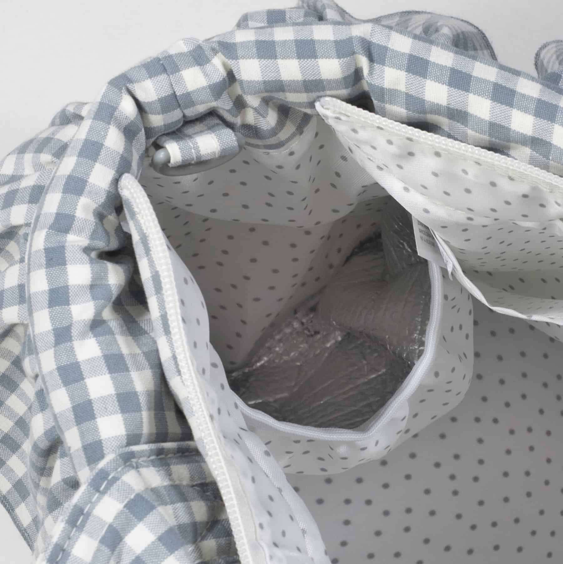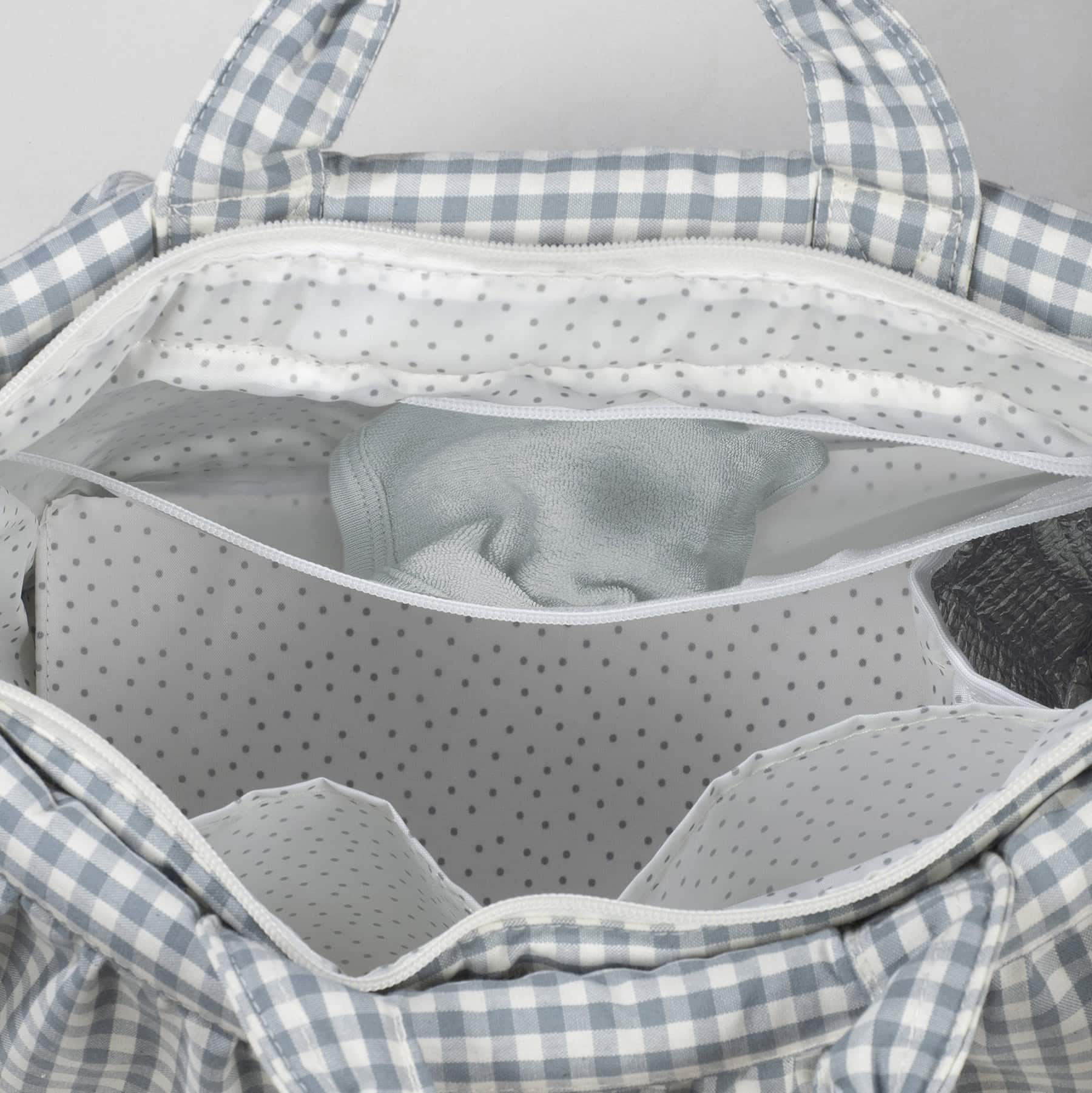 תיק לעגלה מושלם לך ולבייבי שלך. תיק בעיצוב משובץ בגוון ירקרק בקישוט מלמלה עם תאים פנימיים. מיוצר מבד איכותי ועמיד לנוזלים. לתיק רצועה לנשיאה על הכתף. בעל תא לשמירת טמפרטורה ותא דוחה נוזלים לבגדים רטובים.