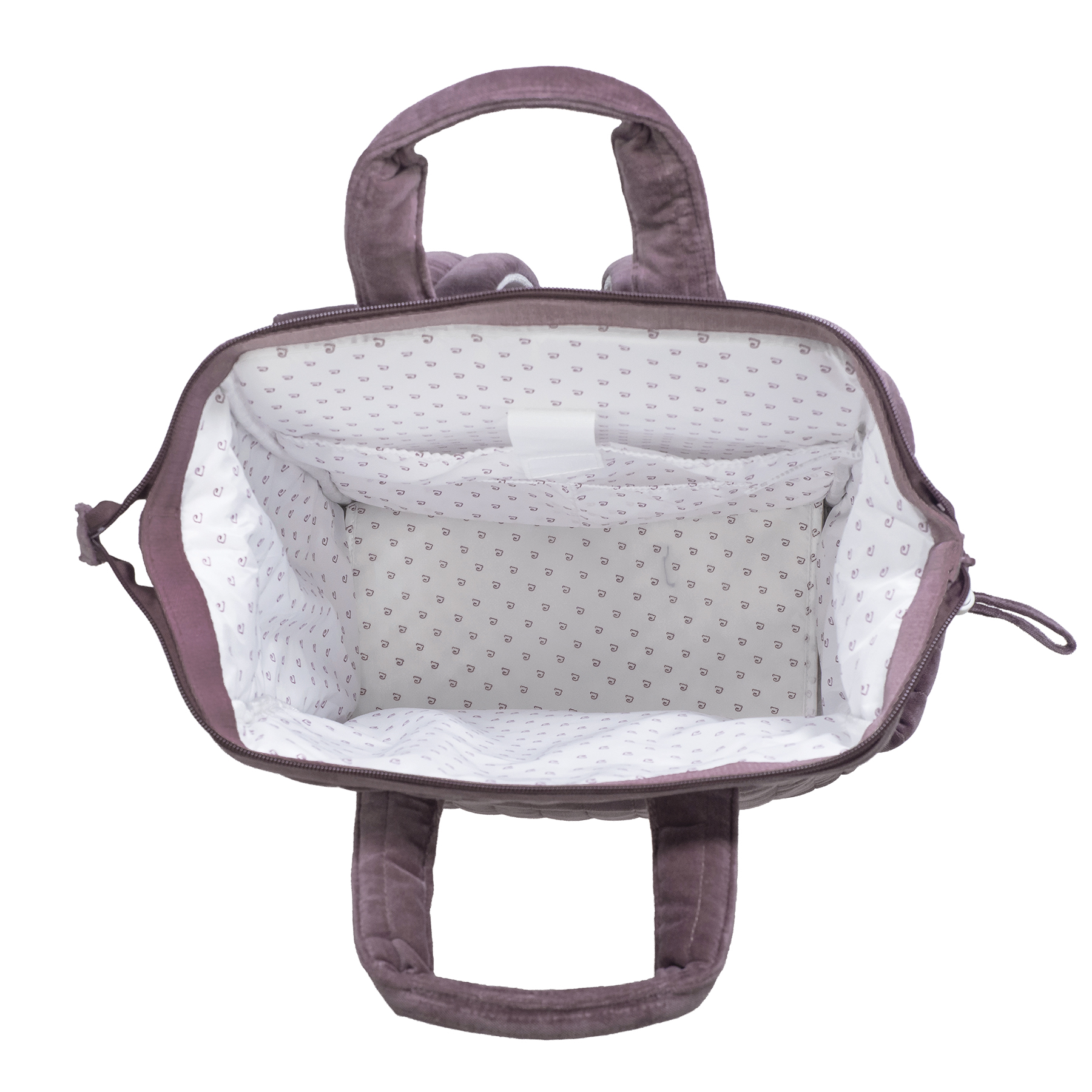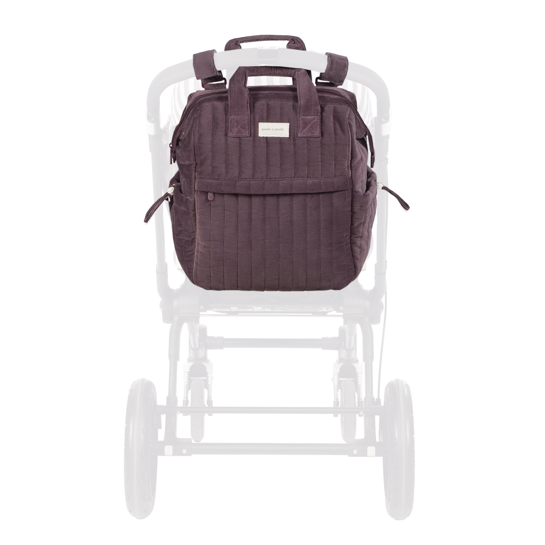 תיק גב לעגלה מושלם לך ולבייבי שלך. תיק עשוי קטיפה סגולה עם תאים פנימיים וחיצוניים. מיוצר מבד איכותי ועמיד לנוזלים. לתיק רצועות לנשיאה על הגב.