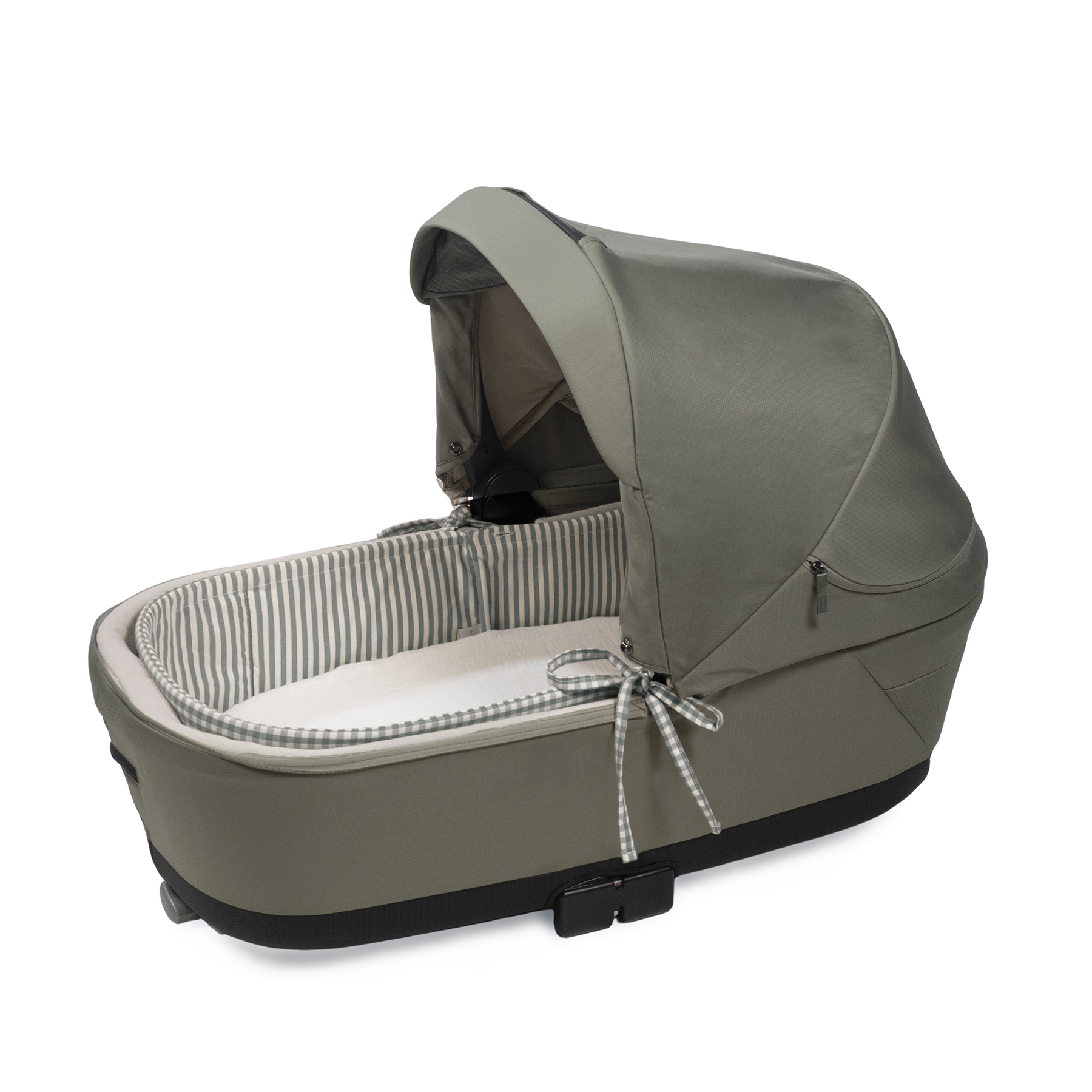 ריפוד פנימי דו צדדי לאמבטיה של עגלה מקולקציית PRALINE. בעל שני צדדים – הדפס פסים והדפס משובץ בגוונים ירוקים עדינים. כולל סט של ריפוד היקפי ומצעים למזרן האמבטיה. 100% כותנה. יש לכבס ידנית או בכביסה עדינה עד 30 מעלות.