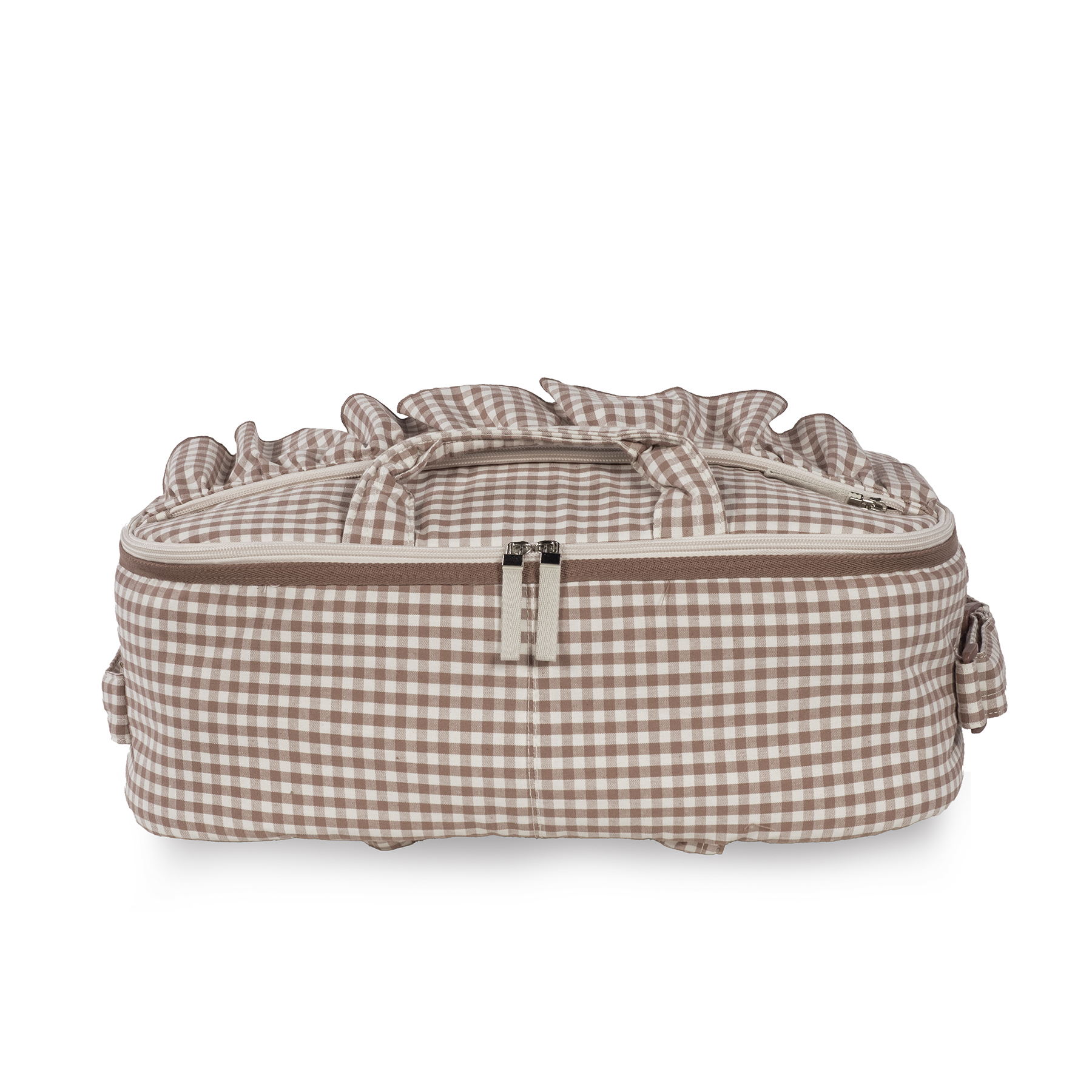 מזוודת נסיעות מושלמת מקולקציית PARLINE. המזוודה בעיצוב משובץ עדין בגווני ורוד חום עם מלמלה. בעלת תאים פנימיים, ידיות נשיאה ורצועת נשיאה לכתף. עשויה מבד עמיד לנוזלים ומתנקה בקלות. מתאימה מאוד כתיק לידה או לנסיעות קצרות עם הבייבי.